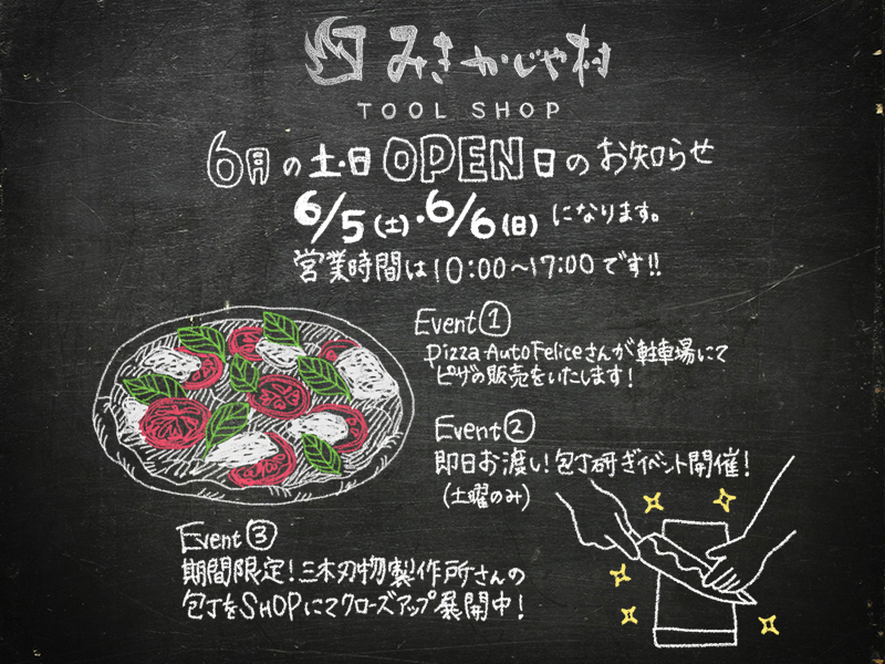 みきかじや村 6月度TOOL SHOP土日OPEN日とイベント開催のお知らせ