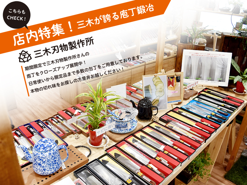 期間限定で三木刃物製作所さんの包丁をSHOPにてクローズアップ展開中です!日常使いから、普段お目にかかれない限定品まで多数の包丁をご用意しております。本物の切れ味をお探しの方、是非お越しください。