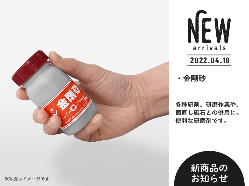 あらゆる人造砥石を取りそろえるナニワ研磨工業株式会社から、各種研削、研磨作業や、面直し砥石との併用に便利な【金剛砂】のお取り扱いを開始致しました。一度使うと手放せなくなる便利さです。ぜひ一度お試しください。